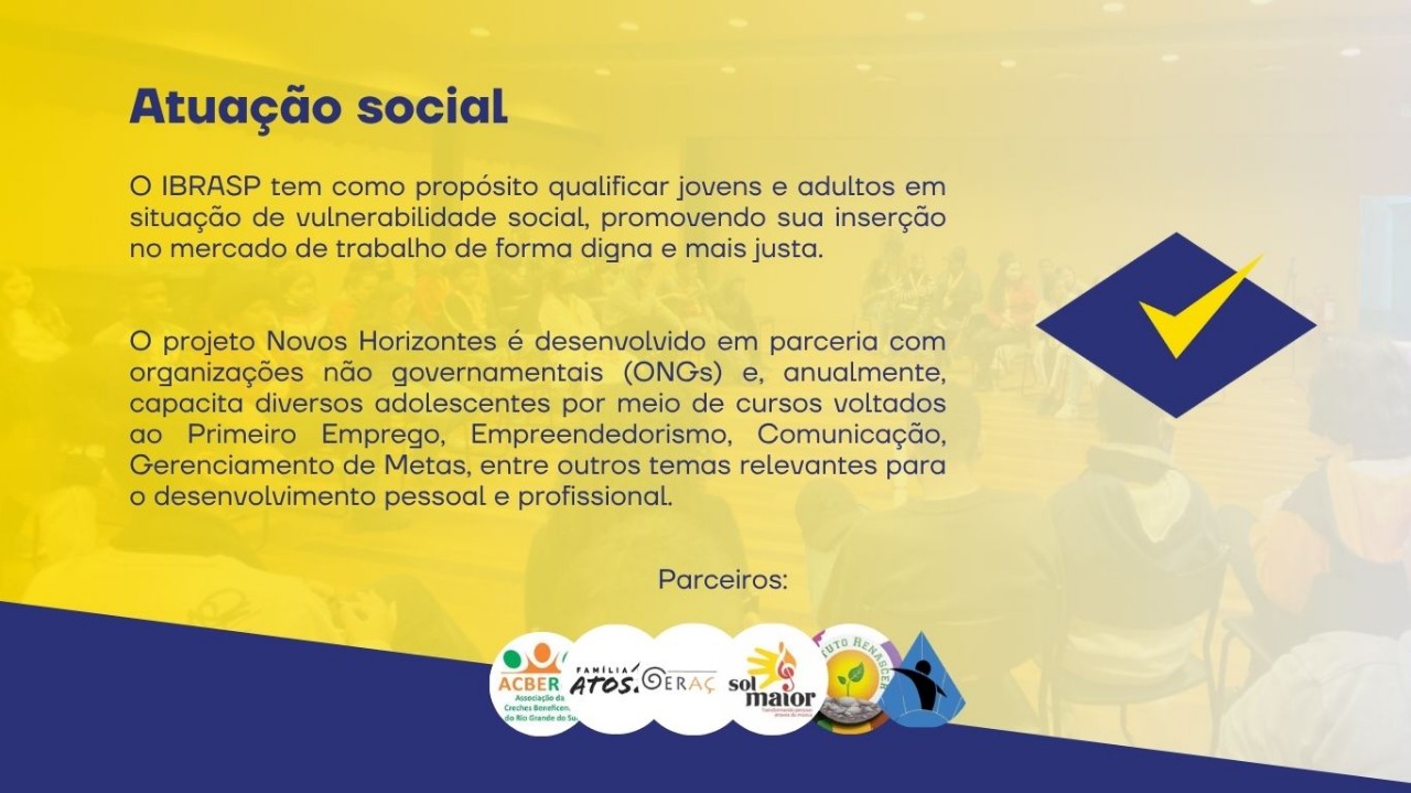 O IBRASP atua visando ao desenvolvimento social, econômico, educacional e cultural da sociedade e suas instituições.